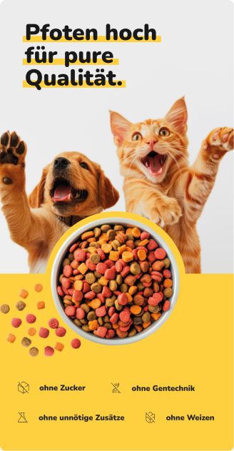 Unsere Produkte müssen echte Helden sein denn nur das Beste kommt in den Napf. 100% natürlich, ohne Zucker, Weizen oder künstliche Zusätze. Unser Auswahlprozess? Härter als das Superheldentraining. Nur die Champions der Tierernährung bestehen.