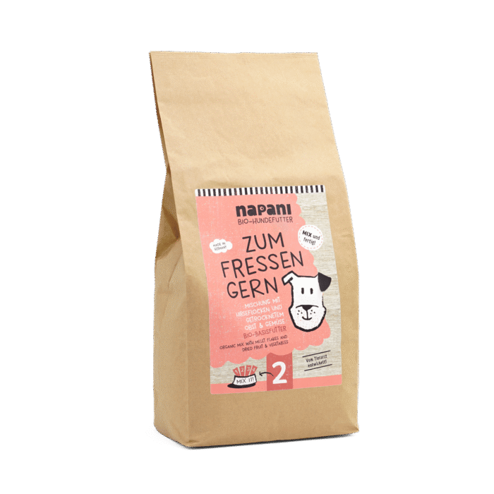 Unser Bio-Mischung «Zum Fressen gern» ist eine ausgewogene und gesunde Basis, die sorgfältig aus hochwertigen, biologischen Zutaten zusammengestellt wurde. Dieses Müsli bietet eine hervorragende Möglichkeit, die Ernährung Ihres Hundes zu ergänzen und ihm alle notwendigen Nährstoffe zu liefern. Es lässt sich mit anderen Zutaten zu einer leckeren, hochwertigen Mahlzeit kombinieren. Ganz einfach und schnell – auch perfekt für unterwegs! Die Komposition aus Kohlenhydraten und Ballaststoffen ist eine optimale Ergänzung zu unseren Produkten (wie z.B. Bio Rind pur), eignet sich aber auch als Beilage zu einer vollwertigen Rohfleisch Fütterung (BARF).