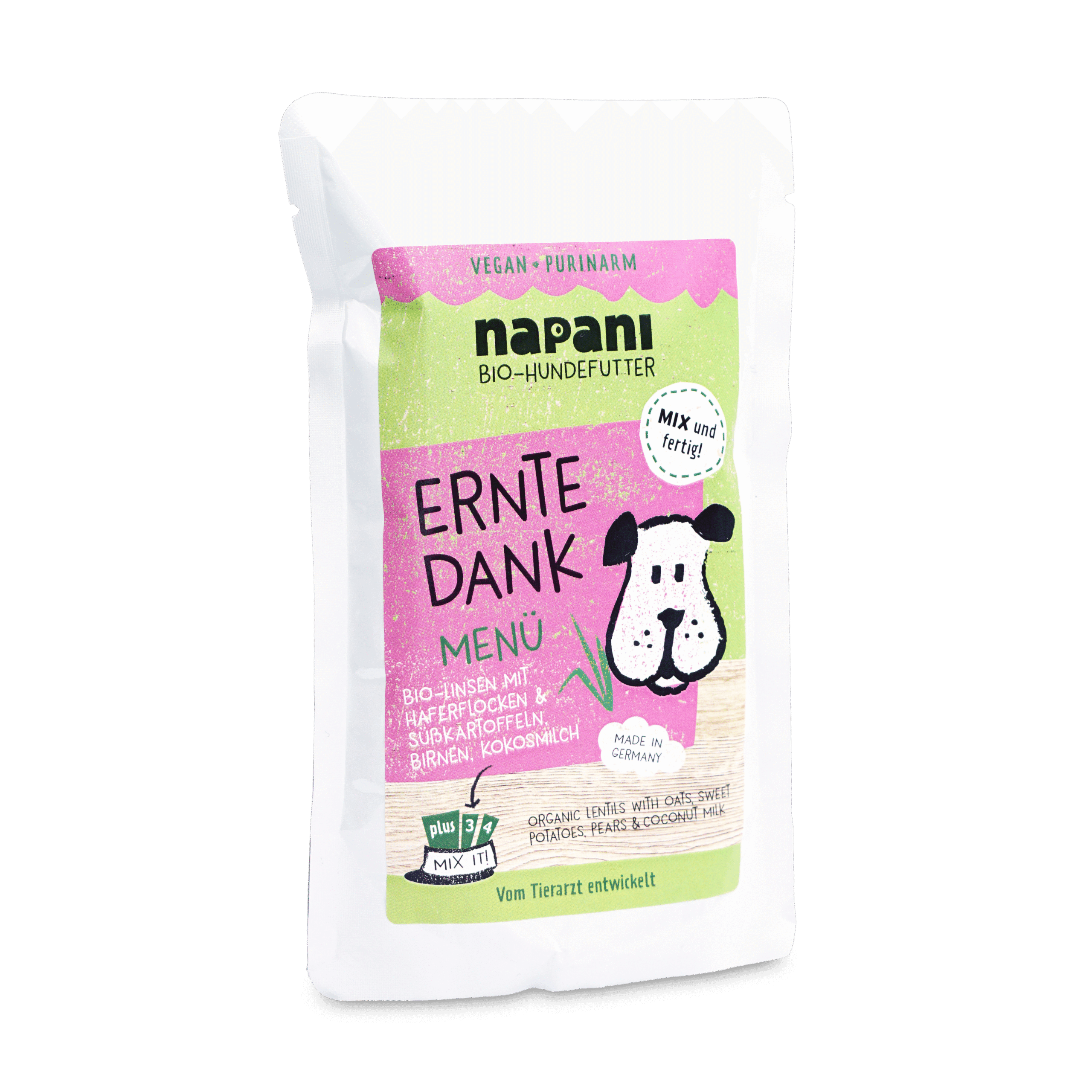 Unsere veganen Bio Menüs sind die ideale Wahl für eine gesunde, nachhaltige Ernährung. Diese Menüs eignen sich nicht nur hervorragend zur Ausschlussdiät, um Nahrungsmittelunverträglichkeiten oder Allergien zu identifizieren, sondern tragen ebenfalls dazu bei den CO2-Fussabdruck zu minimieren. Für Klimahelden auf 4 Pfoten! Wir von napani achten auch für uns selbst bei der Ernährung auf gute Qualität, da ist es für uns selbstverständlich, dass unsere Tiere, zum Wohle deren Gesundheit auch nur das Beste in den Napf bekommen.