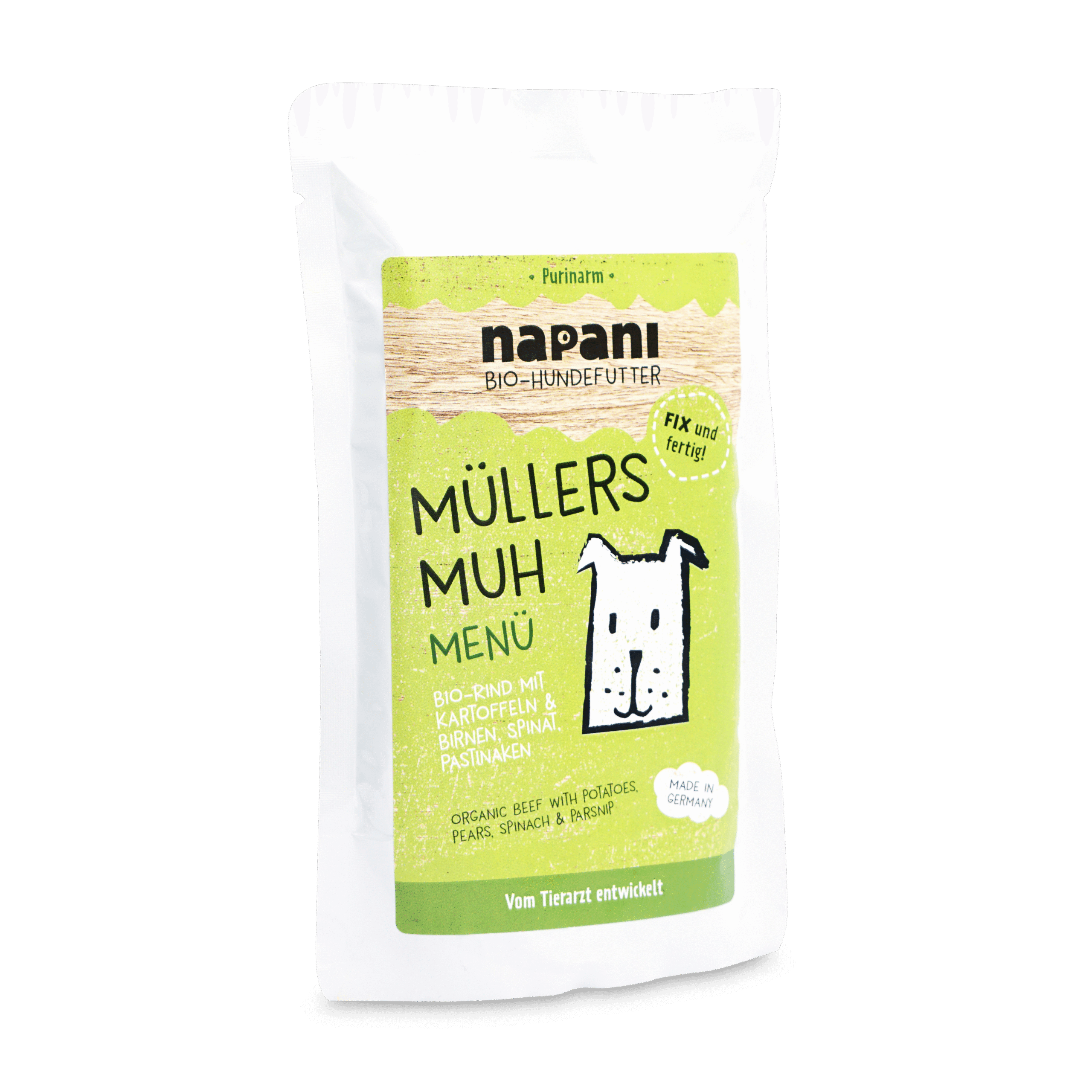 Unser Bio Menü «Müllers Muh» ist speziell entwickelt worden, um eine gesunde und schmackhafte Mahlzeit für Ihren Hund zu bieten. Mit unserer purinarmen Rezeptur und hochwertigen biologischen Zutaten sorgt es für eine ausgewogene Ernährung und ist dadurch ebenfalls für Hunde mit speziellen Ernährungsbedürfnissen geeignet. Unser Bio Menü liefert eine ausgewogene Mischung aus Proteinen, Ballaststoffen, Vitaminen und Mineralstoffen, die zur Gesundheit und Vitalität Ihres Hundes beitragen.