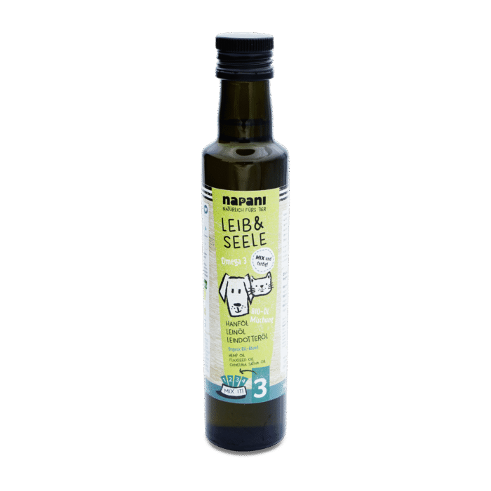 Unser Bio Vital Öl «Leib & Seele» ist eine hochwertige Ergänzung für jedes Hundefutter, angereichert mit wertvollen pflanzlichen Omega-3-Fettsäuren. Diese einzigartige Mischung aus Hanföl, Leinöl und Leindotteröl bietet eine optimale Versorgung mit essentiellen Nährstoffen, die zur Förderung der Gesundheit und des Wohlbefindens Ihres Hundes beitragen.