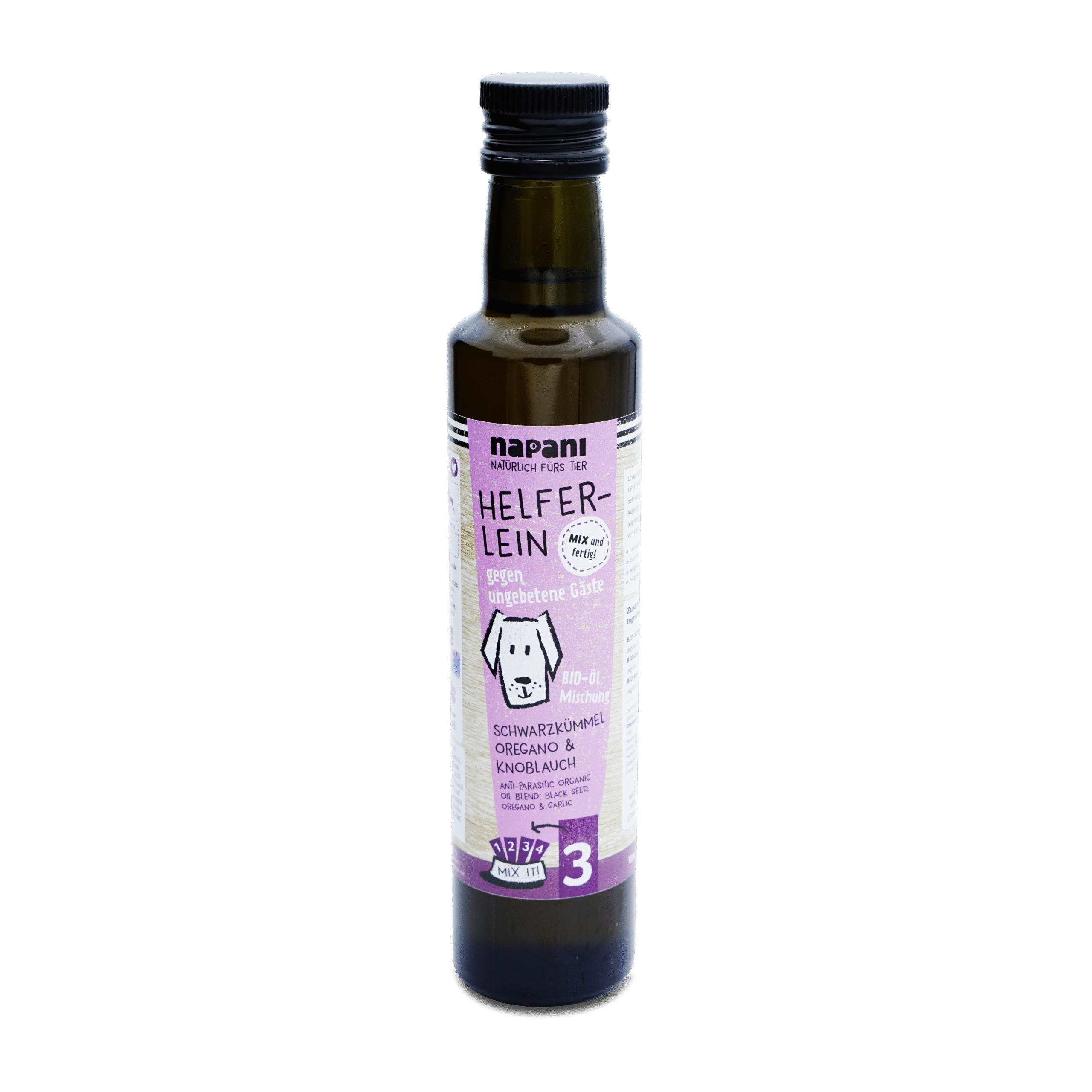 Unser Bio Vital Öl «Helferlein» ist ein hochwertiges Ergänzungsmittel für jeden Hund. Dank seiner natürlichen Inhaltsstoffe kann es äussert hilfreich im Kampf gegen ungebetene Gäste, wie z.B. Zecken sein. Diese einzigartige Mischung aus Oreganoöl, Knoblauchöl und Schwarzkümmelöl bietet aber auch noch andere gesundheitliche Vorteile und unterstützt das Wohlbefinden Ihres Vierbeiners.