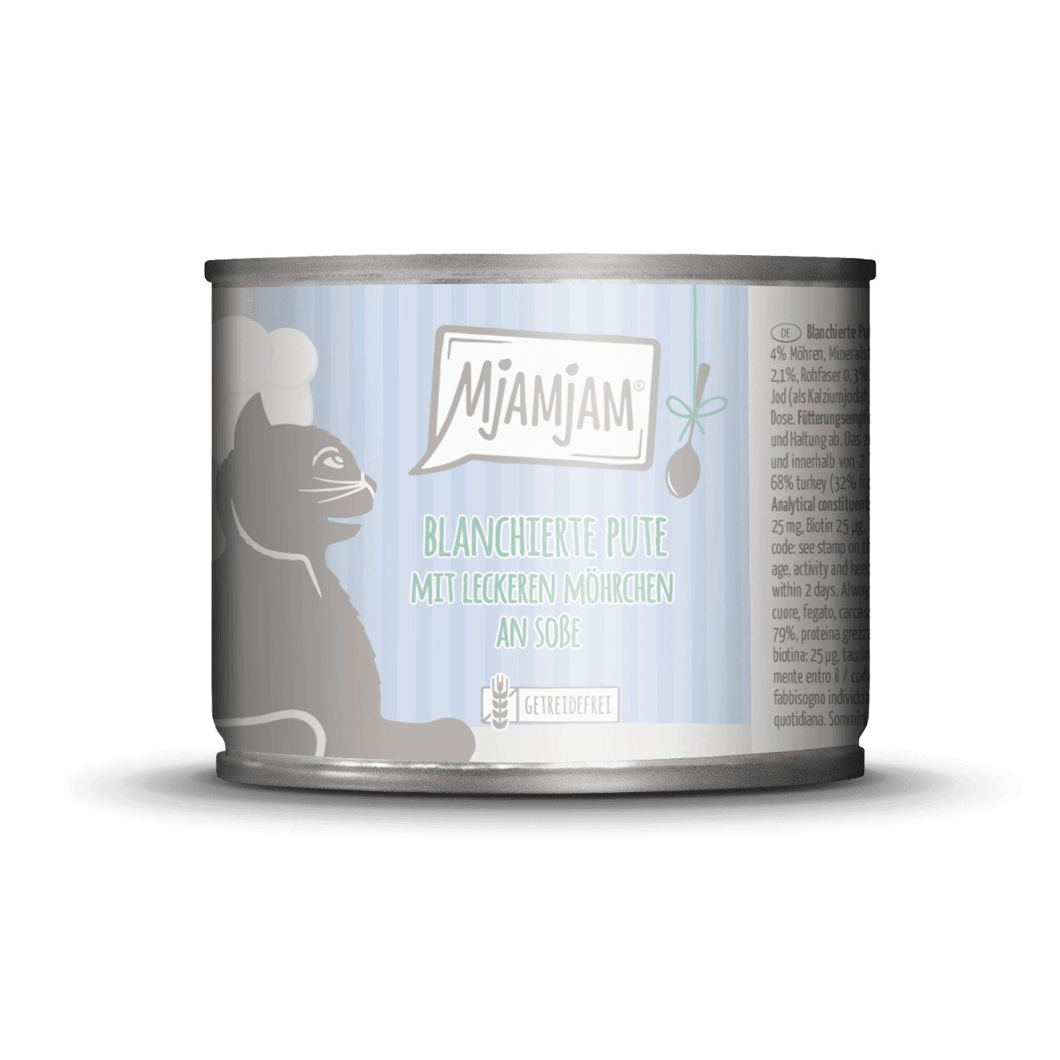 Mit Geflügel kannst Du immer punkten? Dann serviere am besten unsere blanchierte Pute mit leckeren Möhrchen an Sosse und ernte dafür extra Schmusestunden von deinem Stubentiger. Einschmeicheln war noch nie so einfach!