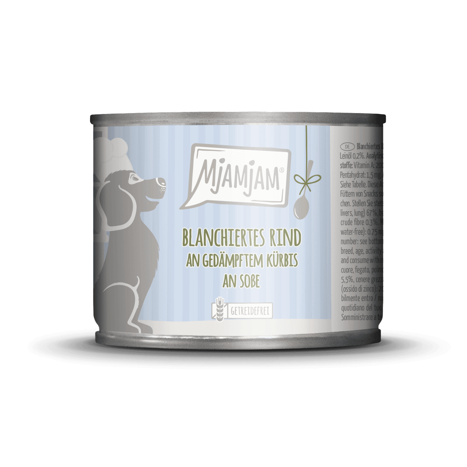 Bereits beim Öffnen ein Genuss. Unsere neuen blanchierten Sorten punkten mit bestem Rind an gedämpftem Kürbis. Dank extra viel Sosse wird es nicht nur unglaublich lecker, sondern auch vollkommen gesund. Wie gut, dass es die Neuheiten von MjAMjAM gibt. Dort ist einfach alles vereint. Leckere Mahlzeiten, gesunder Inhalt, einzigartiger Geschmack. Was für ein (Sossen)Glück.
