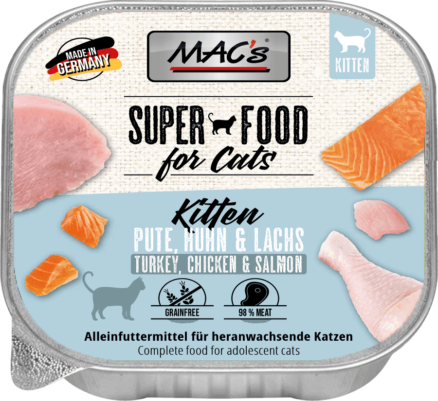 Mit MAC´s bekommt Ihre Katze das, was sie am liebsten mag – Fleisch. Durch den konsequenten Verzicht auf künstliche Zutaten und die Orientierung an einer natürlichen Ernährung, wie dem essentiellen Bedarf an Taurin, sorgt MAC´s für eine gesunde und ausgewogene Ernährung Ihrer Katze.