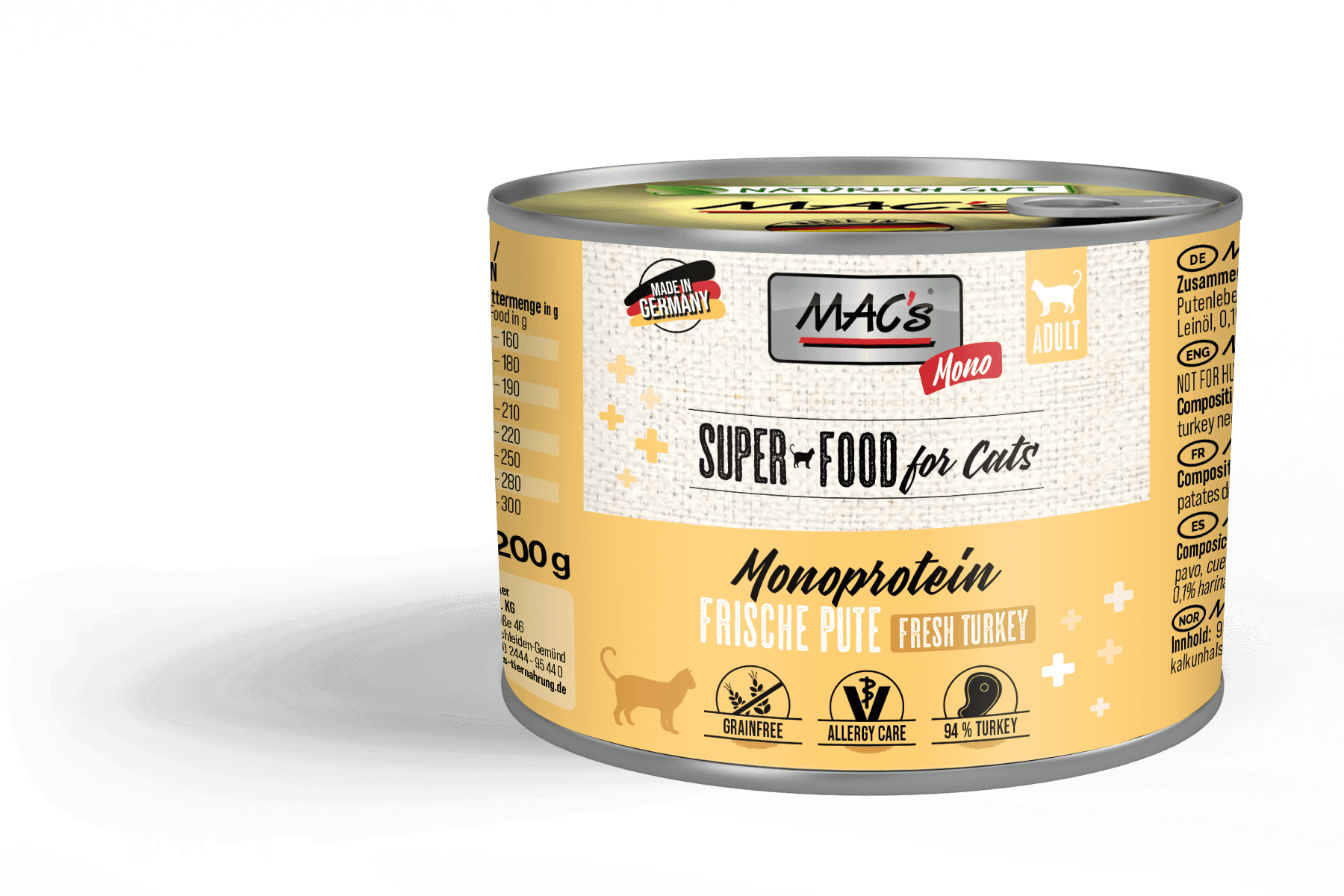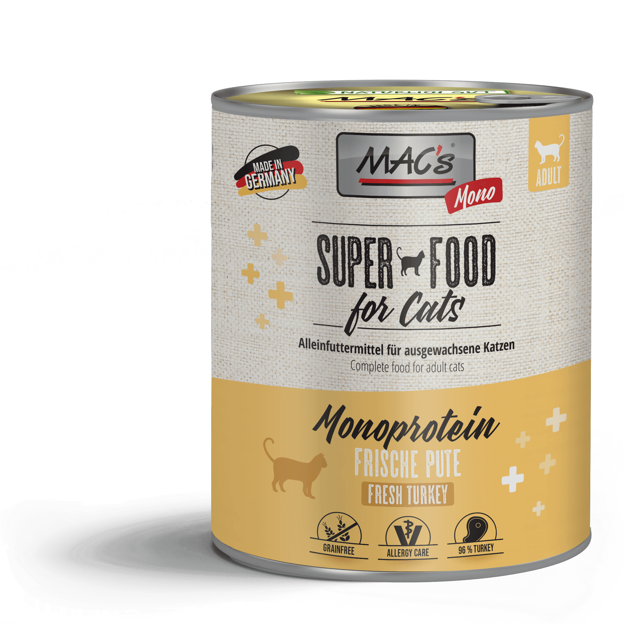 MAC’s CAT Mono Pute besteht aus nur einer Fleischsorte als Proteinlieferant. MAC’s MONO eignet sich ideal bei empfindlichen Katzen und ist zur Ausschlussdiät geeignet. Die getreidefreie Vollnahrung wurde entwickelt, um das Wohlbefinden Ihres Lieblings zu steigern.