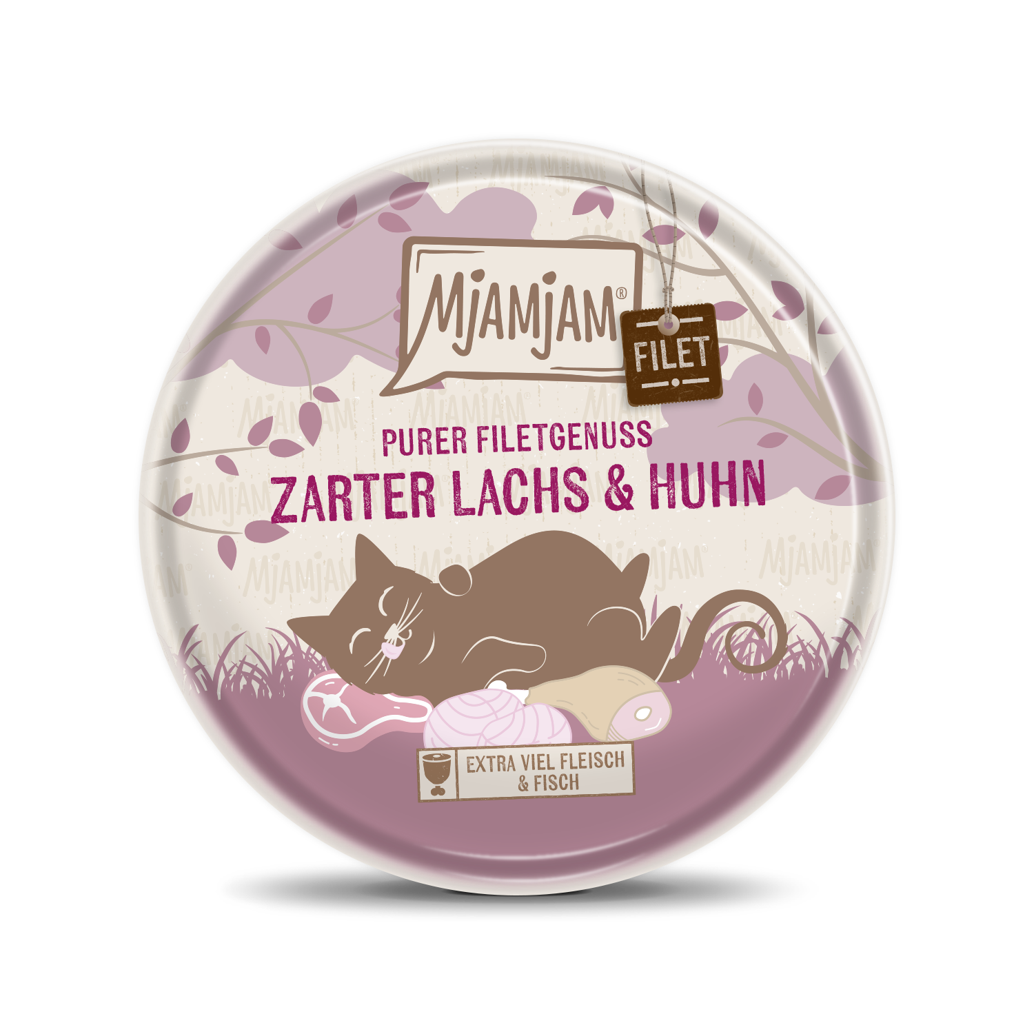Zarter Lachs, feinstes Huhn: was könnte das wohl sein? Natürlich der pure Filetgenuss von MjAMjAM. Auch diese Schlemmerei überzeugt, mit einer extra Portion Fleisch, den Feinschmecker-Gaumen Deines Lieblings. Was passt wohl besser zu einem romantischen Dinner im Napf Deiner Samtpfote? MjAMjAM – weil’s lecker schmeckt!