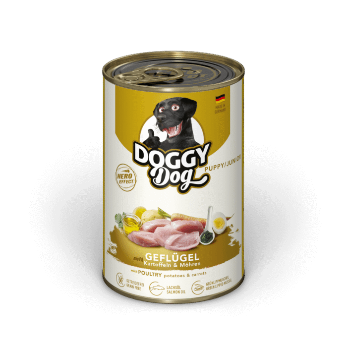 Auf tapsigen Pfoten die Welt erkunden. Das wird deinem jungen Liebling mit unserem speziell für Welpen entwickelten Geflügel Puppy/Junior Futter ganz besonders gut gelingen. Denn es liefert ihm alles, was ein heranwachsender Hero braucht.