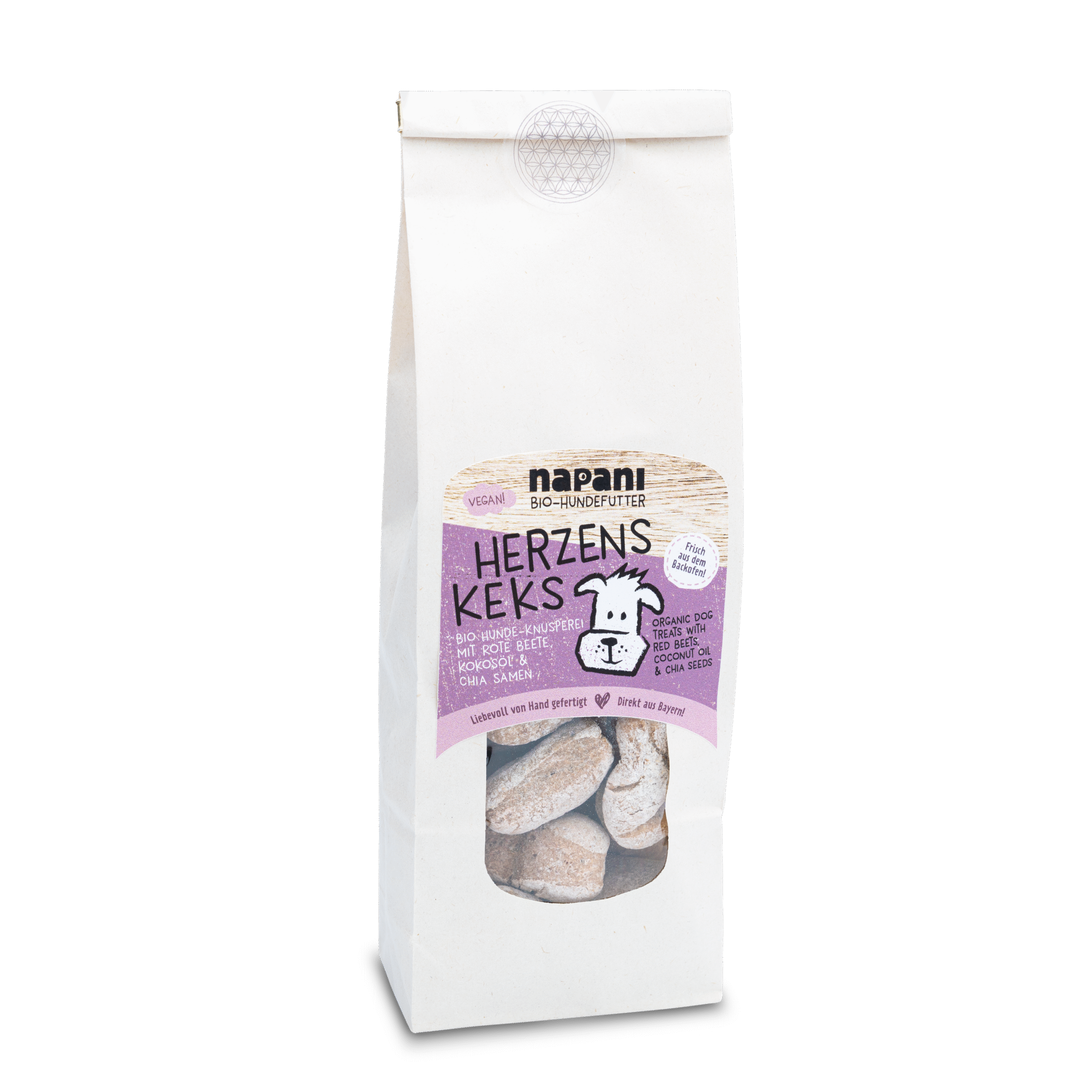 Unsere köstlichen, veganen Hunde Kekse werden in einer bayerischen, privaten Backstube liebevoll von Hand gebacken und das nach hauseigenem Rezept. Mit den besten natürlichen Zutaten aus rein biologischer Landwirtschaft.