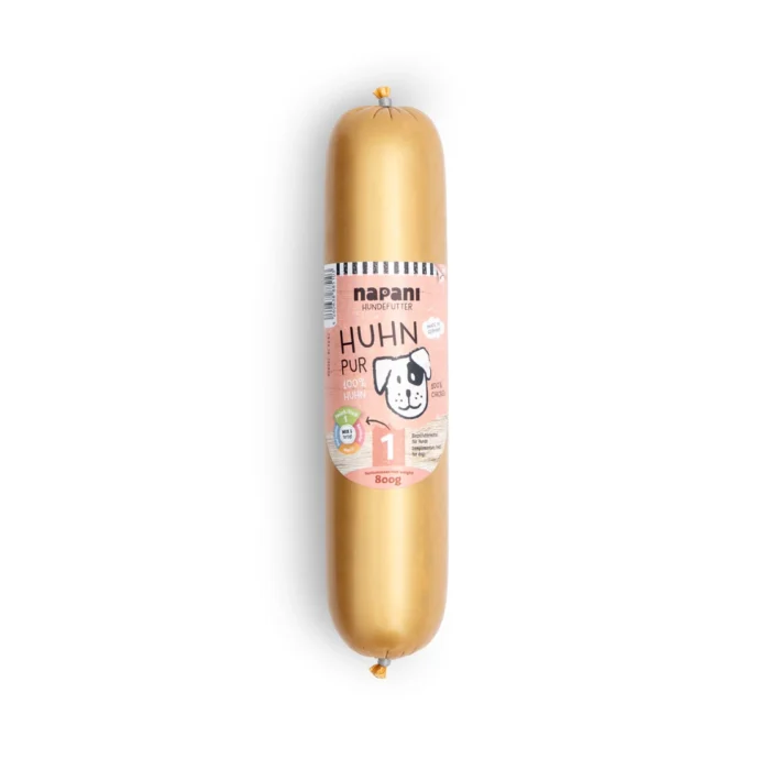 100 % Huhn- im praktischen Kunstdarm, weniger Verpackung voller Genuss!