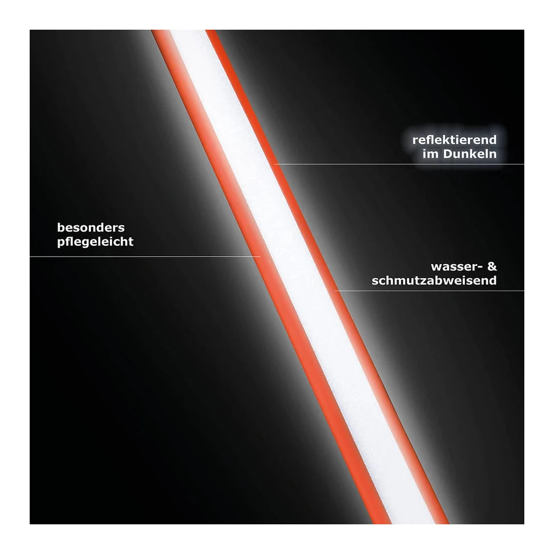 Die reflektierende, verstellbare Führleine der Serie Waterproof ist reissfest und witterungsbeständig. Das Nylon Gurtband umhüllt von einem innovativen Kunststoffgemisch macht sie griffig, robust und pflegeleicht. Wasser sowie Schmutz dringen nicht in das Material ein und sie lässt sich leicht reinigen.