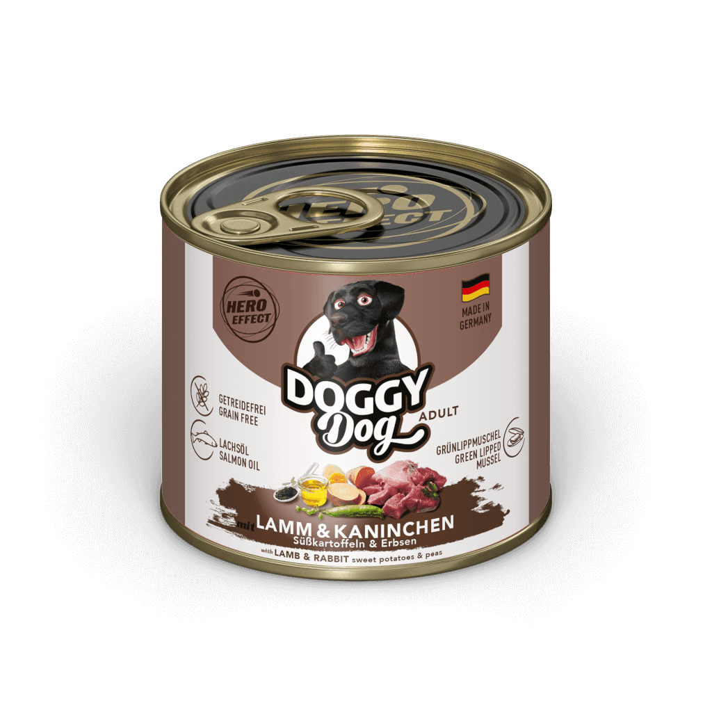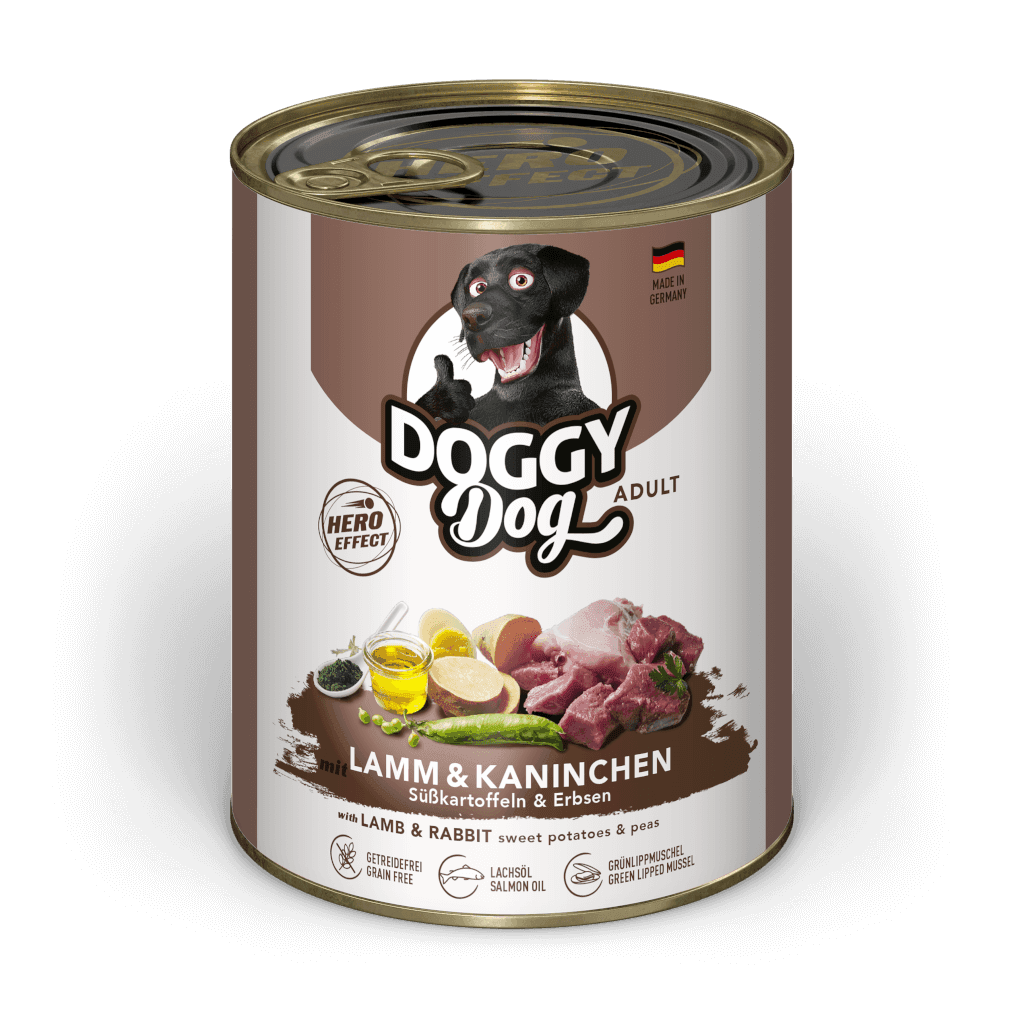 Lammfromm oder aufgeweckt wie ein Kaninchen? DOGGY Dog’s Geschmacksrichtung Lamm & Kaninchen mit Süsskartoffeln & Erbsen ist auf jeden Fall für Vierbeiner mit beiden Charakterzügen bestens geeignet.