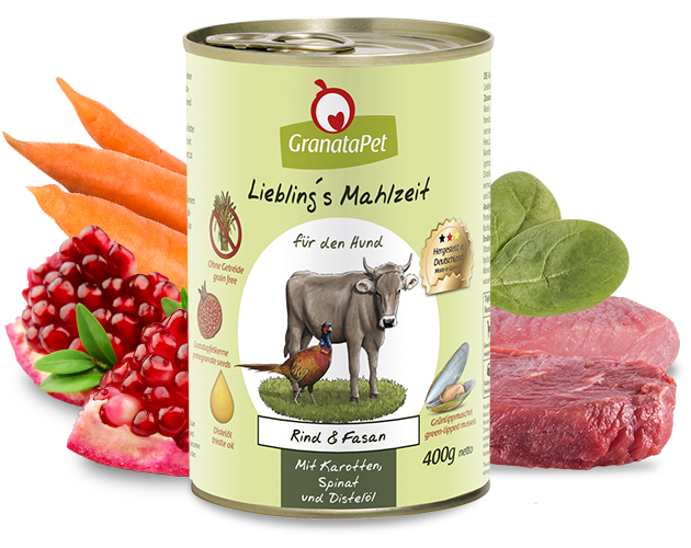 GranataPet Rind und Fasan mit Karotten, Spinat und Distelöl