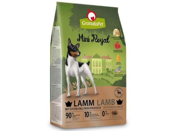 GranataPet Mini Royal Lamm ist eine Vollwertnahrung für Hunde aller kleinen Hunderassen. Das Trockenfutter besteht aus viel frischem und getrocknetem Fleisch sowie Gemüse, Obst, Kräutern, norwegischem Lachsöl und weiteren wertvollen Zutaten.