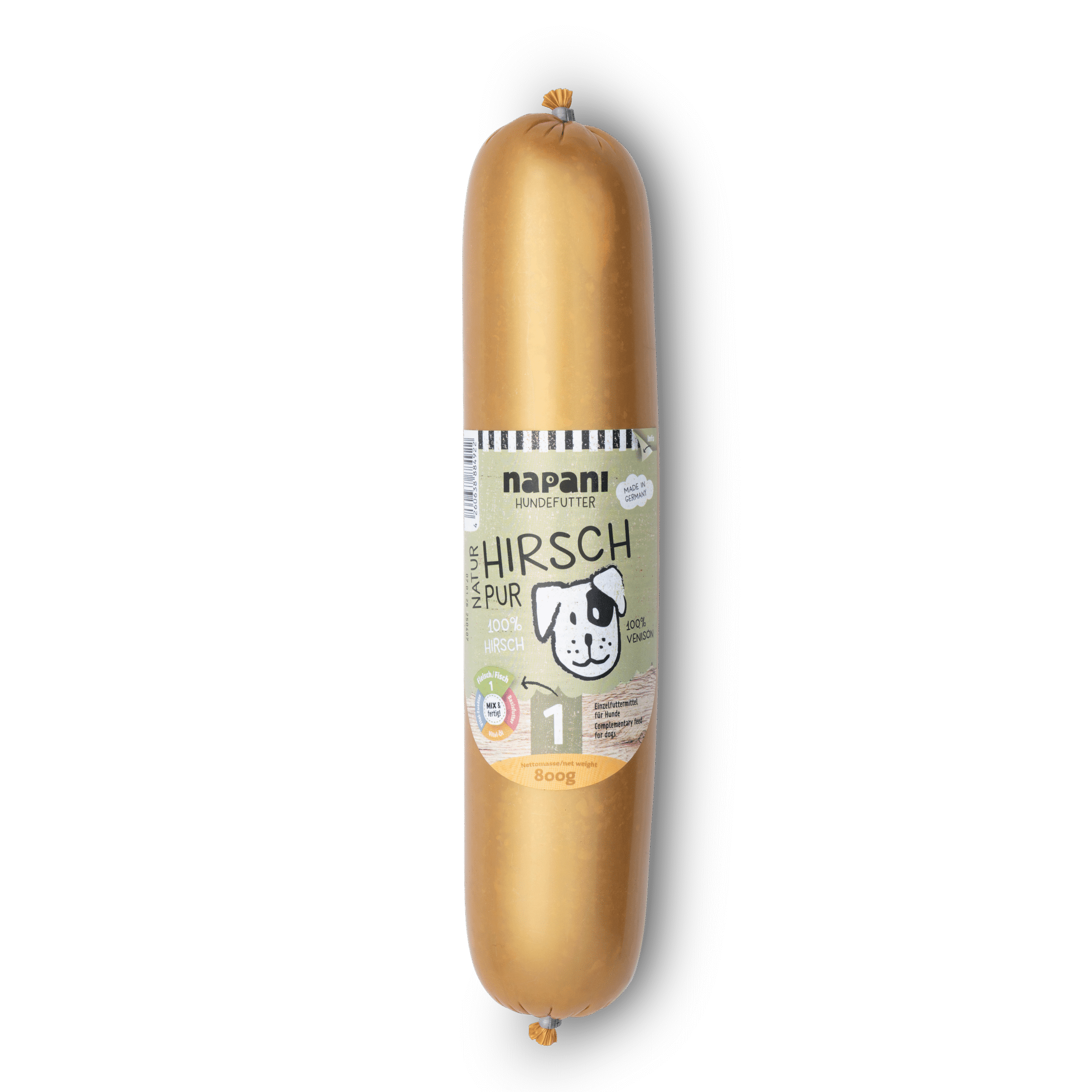 Einfach nur Hirsch – sonst nichts. Wir von napani achten auch für uns selbst bei der Ernährung auf gute Qualität. Deshalb ist es für uns selbstverständlich und wichtig, dass unsere Vierbeiner zum Wohle ihrer Gesundheit auch nur das Beste in den Napf bekommen. Ganz nach dem Motto: «dein Hund ist, was er frisst». Bei uns gibt es nur jeweils eine Fleischquelle in der Wurst – und die wird schonend dampfgegart. So bleiben möglichst viele Vitamine und Mineralstoffe des Fleisches erhalten. Um ein artgerechtes, bedarfsdeckendes Futter zu erhalten, mische unser Basisfutter, Vital-Zusätze und Vital-Öle unter. Mischen ist possible!
