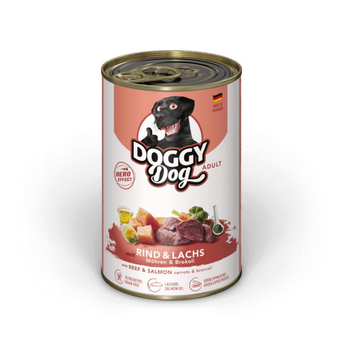 Aufgepasst, hier kommt ein wahrer Gaumenschmaus für deinen tierischen Begleiter. DOGGY Dog’s Geschmacksrichtung Rind & Lachs mit Karotten & Brokkoli ist eine leckere Schlemmerei mit proteinreichem Rindfleisch und besonders gesundem Lachs voller Omega-3 Fettsäuren, die nicht nur seinen Schwanz zum Wedeln, sondern auch sein Fell zum Strahlen bringen werden.