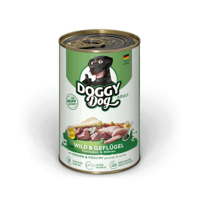Und da bei wilden Abenteuern die Gelenke ganz besonders wichtig sind, haben wir DOGGY Dog’s Wild & Geflügel Sorte mit Grünlippmuschel verfeinert und bieten damit deinem Liebling den vollen Hero-Effect.