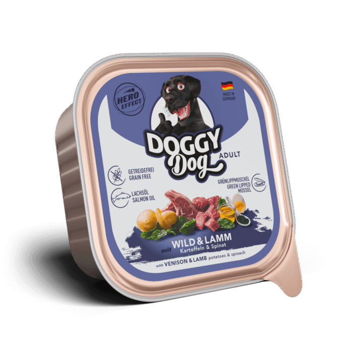 In Verbindung mit gelenkunterstützender Grünlippmuschel bekommt dein Hund mit DOGGY Dog’s Wild & Lamm mit Kartoffeln & Spinat also den kompletten Hero-Effect.
