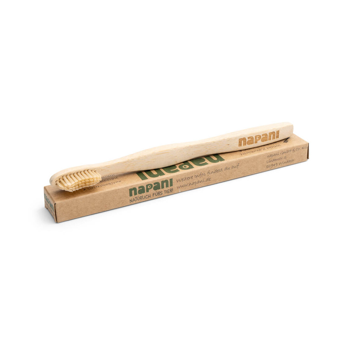 Zahnpflege für deinen Vierbeiner? Ganz klar! Aber bitte weltbewusst. Unsere Zahnbürsten sind aus reinem Bambus gefertigt: ein natürlicher, dauerhafter und erneuerbarer Rohstoff. Eine tolle Alternative für vierbeinige Klimahelden. Der Bambusgriff ist stabil und resistent gegen Schimmel. Die Borsten sind ebenfalls aus Bambus, somit kann die Zahnbürste, wenn sie ausgetauscht werden muss, ruhigen Gewissens kompostiert werden.